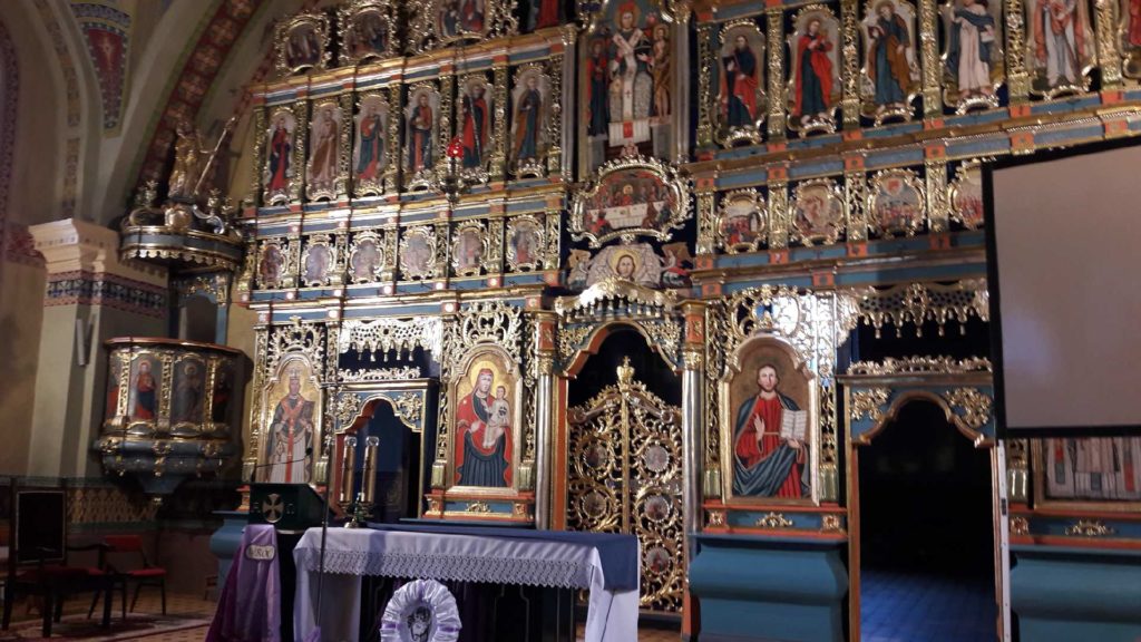 Pierwszy wykład odbył się 14 marca w cerkwiach Szlachtowej i Jaworek. Nasza Koleżanka, Zofia Krępa, wystąpiła tym razem nie tyle w roli emerytowanego nauczyciela, co czynnego przewodnika. Oprowadziła studentów po tych szczególnych kościołach, wyjaśniając przede wszystkim, dlaczego ikonostas stanowił Biblię dla ubogich. Przy okazji opowiedziała o historii tych miejscowości i tragicznych losach mieszkańców – Łemków.